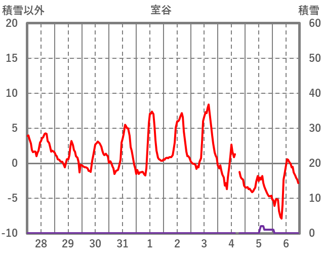 | 日 | 時 | 気温 | 降水 | 風向/風速 | 日照 | 積雪 | 降雪 |