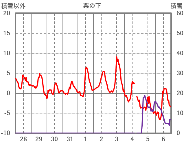 | 日 | 時 | 気温 | 降水 | 風向/風速 | 日照 | 積雪 | 降雪 |