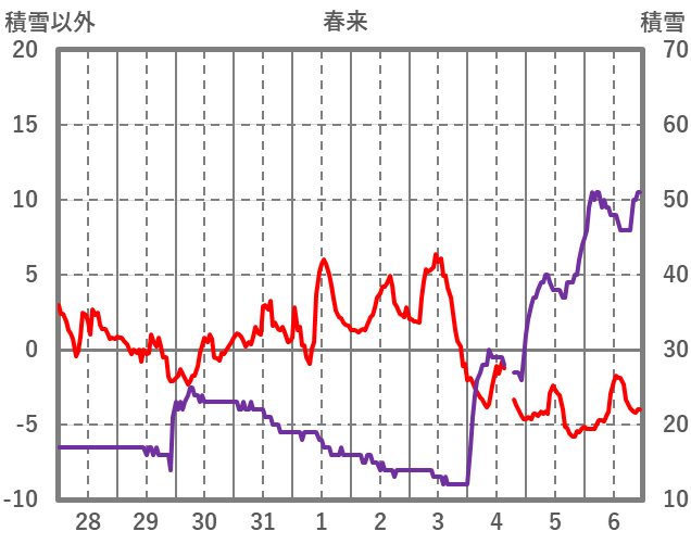 | 日 | 時 | 気温 | 降水 | 風向/風速 | 日照 | 積雪 | 降雪 |