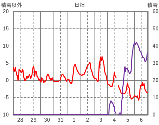 | 日 | 時 | 気温 | 降水 | 風向/風速 | 日照 | 積雪 | 降雪 |