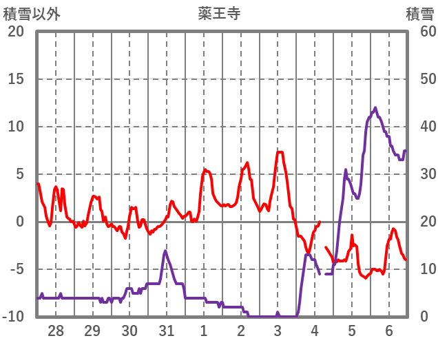 | 日 | 時 | 気温 | 降水 | 風向/風速 | 日照 | 積雪 | 降雪 |