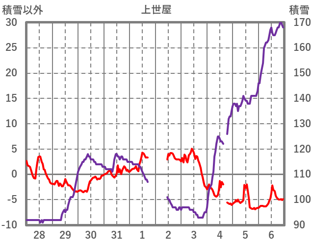 | 日 | 時 | 気温 | 降水 | 風向/風速 | 日照 | 積雪 | 降雪 |