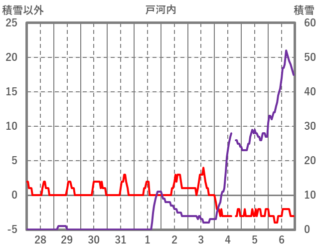 | 日 | 時 | 気温 | 降水 | 風向/風速 | 日照 | 積雪 | 降雪 |
