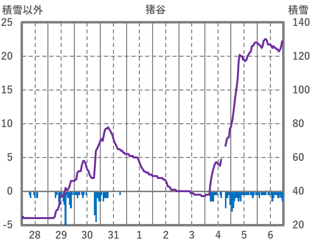 | 日 | 時 | 気温 | 降水 | 風向/風速 | 日照 | 積雪 | 降雪 |