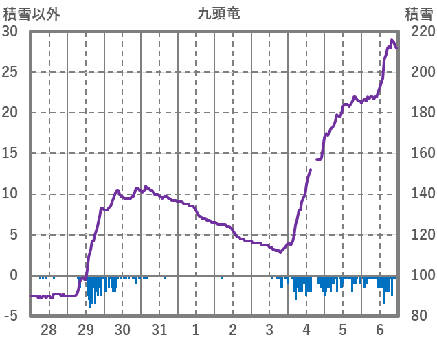 | 日 | 時 | 気温 | 降水 | 風向/風速 | 日照 | 積雪 | 降雪 |