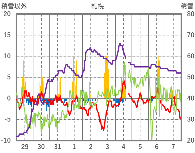 | 日 | 時 | 気温 | 降水 | 風向/風速 | 日照 | 積雪 | 降雪 |