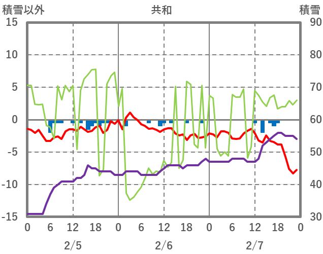 | 日 | 時 | 気温 | 降水 | 風向/風速 | 日照 | 積雪 | 降雪 |