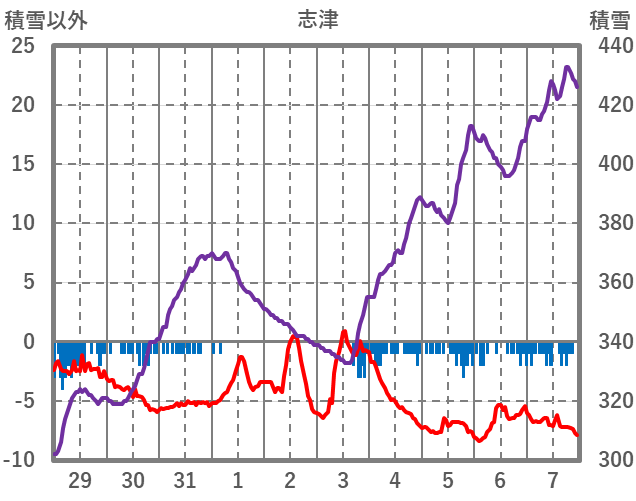 | 日 | 時 | 気温 | 降水 | 風向/風速 | 日照 | 積雪 | 降雪 |