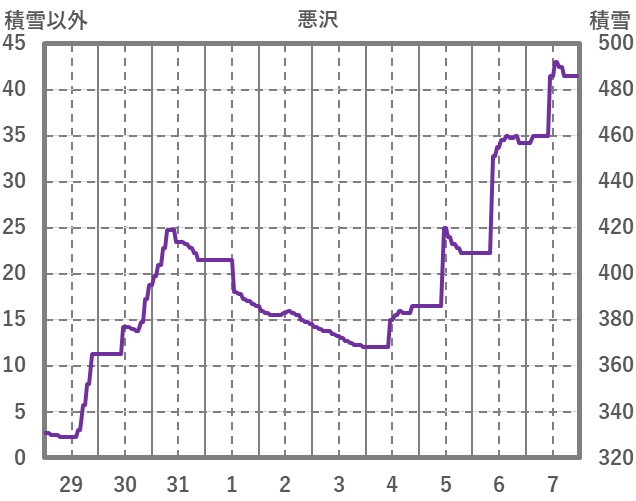 | 日 | 時 | 気温 | 降水 | 風向/風速 | 日照 | 積雪 | 降雪 |