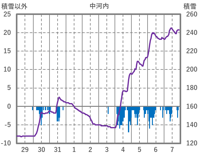 | 日 | 時 | 気温 | 降水 | 風向/風速 | 日照 | 積雪 | 降雪 |