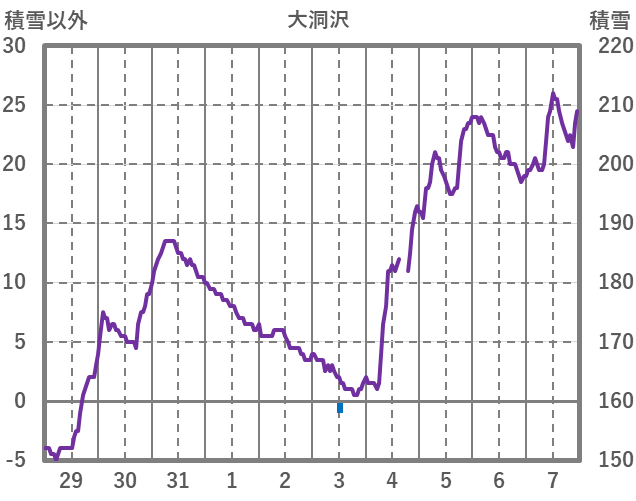 | 日 | 時 | 気温 | 降水 | 風向/風速 | 日照 | 積雪 | 降雪 |