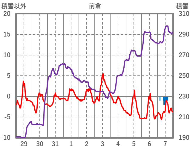 | 日 | 時 | 気温 | 降水 | 風向/風速 | 日照 | 積雪 | 降雪 |