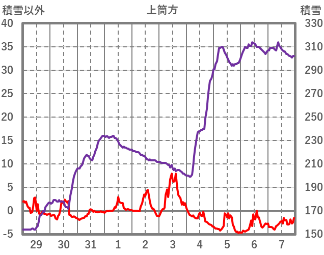 | 日 | 時 | 気温 | 降水 | 風向/風速 | 日照 | 積雪 | 降雪 |