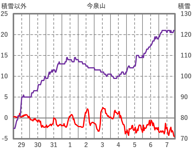 | 日 | 時 | 気温 | 降水 | 風向/風速 | 日照 | 積雪 | 降雪 |