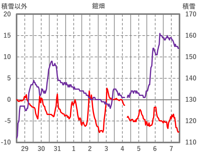 | 日 | 時 | 気温 | 降水 | 風向/風速 | 日照 | 積雪 | 降雪 |