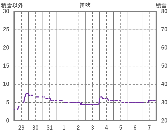 | 日 | 時 | 気温 | 降水 | 風向/風速 | 日照 | 積雪 | 降雪 |