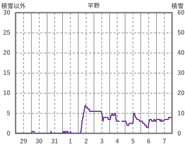 | 日 | 時 | 気温 | 降水 | 風向/風速 | 日照 | 積雪 | 降雪 |