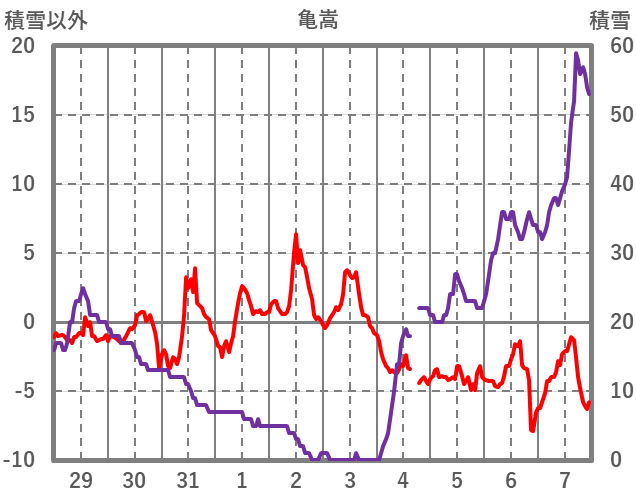 | 日 | 時 | 気温 | 降水 | 風向/風速 | 日照 | 積雪 | 降雪 |