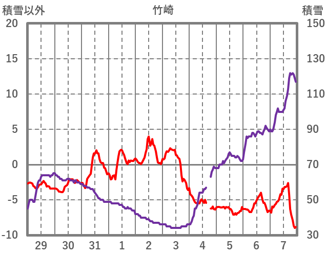 | 日 | 時 | 気温 | 降水 | 風向/風速 | 日照 | 積雪 | 降雪 |