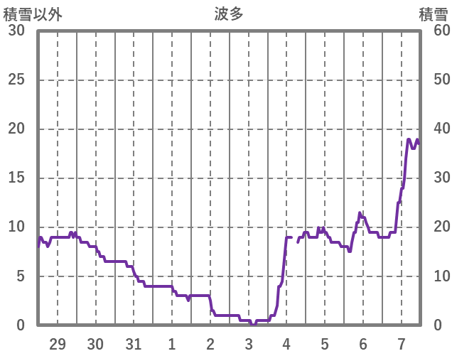 | 日 | 時 | 気温 | 降水 | 風向/風速 | 日照 | 積雪 | 降雪 |