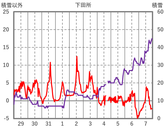 | 日 | 時 | 気温 | 降水 | 風向/風速 | 日照 | 積雪 | 降雪 |
