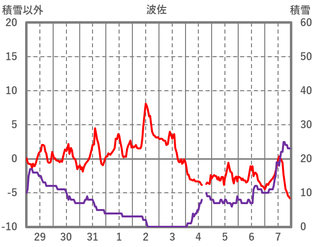 | 日 | 時 | 気温 | 降水 | 風向/風速 | 日照 | 積雪 | 降雪 |