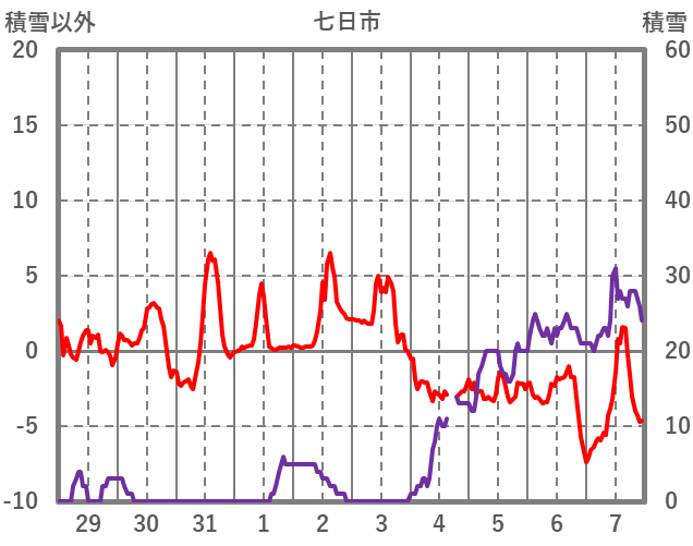 | 日 | 時 | 気温 | 降水 | 風向/風速 | 日照 | 積雪 | 降雪 |