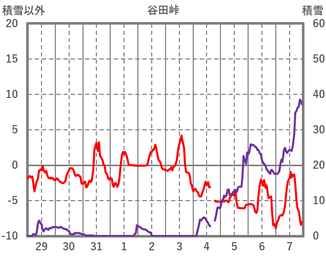| 日 | 時 | 気温 | 降水 | 風向/風速 | 日照 | 積雪 | 降雪 |
