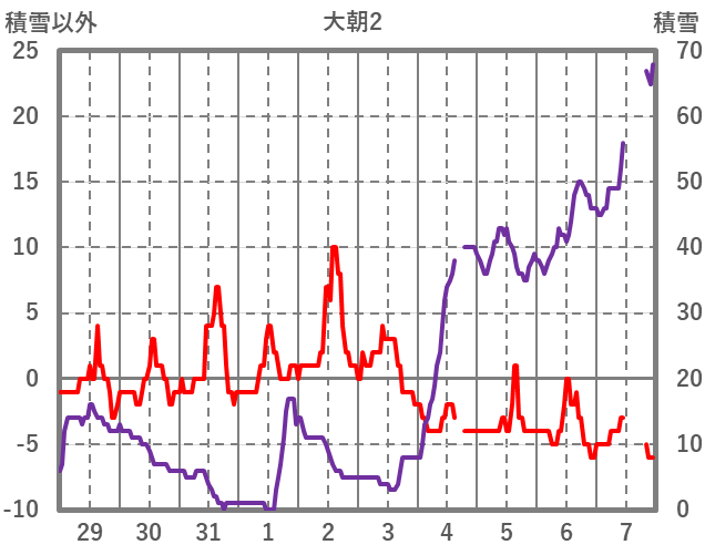 | 日 | 時 | 気温 | 降水 | 風向/風速 | 日照 | 積雪 | 降雪 |