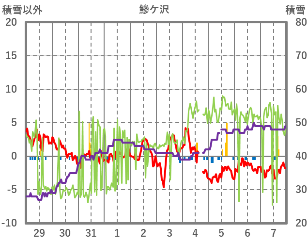 | 日 | 時 | 気温 | 降水 | 風向/風速 | 日照 | 積雪 | 降雪 |