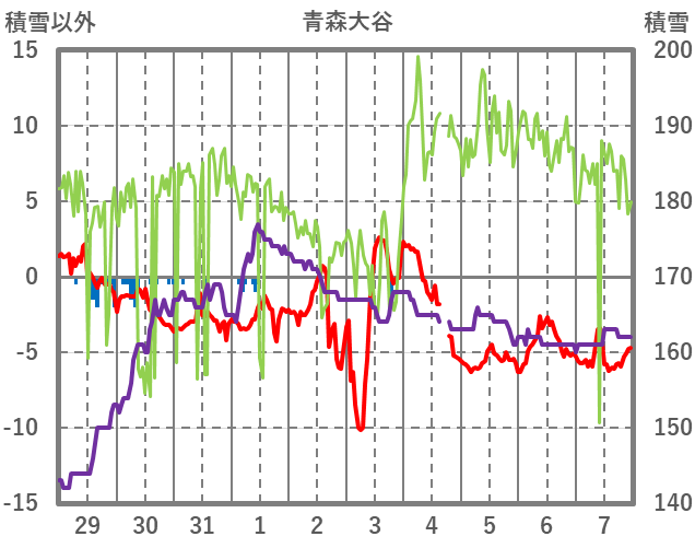 | 日 | 時 | 気温 | 降水 | 風向/風速 | 日照 | 積雪 | 降雪 |