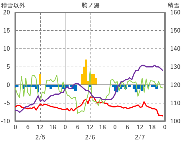 | 日 | 時 | 気温 | 降水 | 風向/風速 | 日照 | 積雪 | 降雪 |