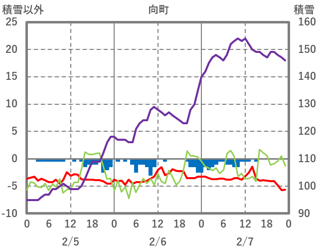 | 日 | 時 | 気温 | 降水 | 風向/風速 | 日照 | 積雪 | 降雪 |