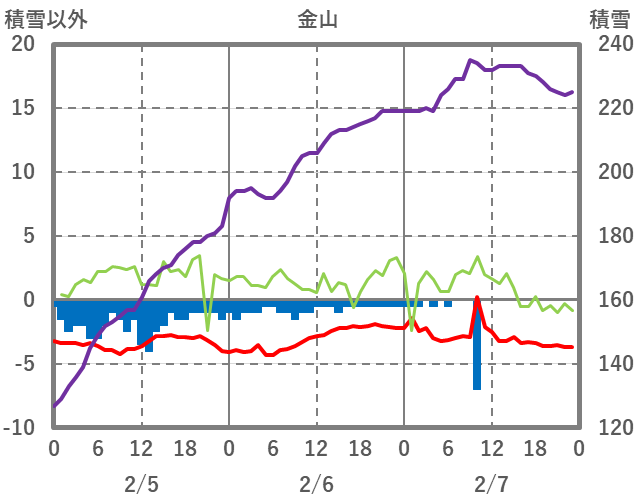 | 日 | 時 | 気温 | 降水 | 風向/風速 | 日照 | 積雪 | 降雪 |