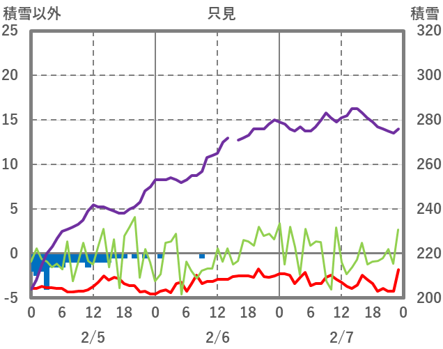 | 日 | 時 | 気温 | 降水 | 風向/風速 | 日照 | 積雪 | 降雪 |