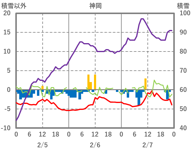 | 日 | 時 | 気温 | 降水 | 風向/風速 | 日照 | 積雪 | 降雪 |