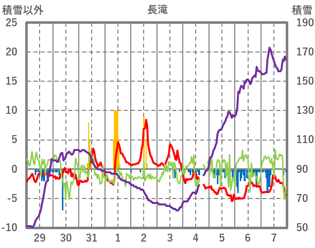 | 日 | 時 | 気温 | 降水 | 風向/風速 | 日照 | 積雪 | 降雪 |