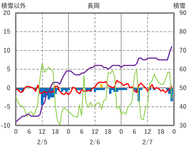 | 日 | 時 | 気温 | 降水 | 風向/風速 | 日照 | 積雪 | 降雪 |