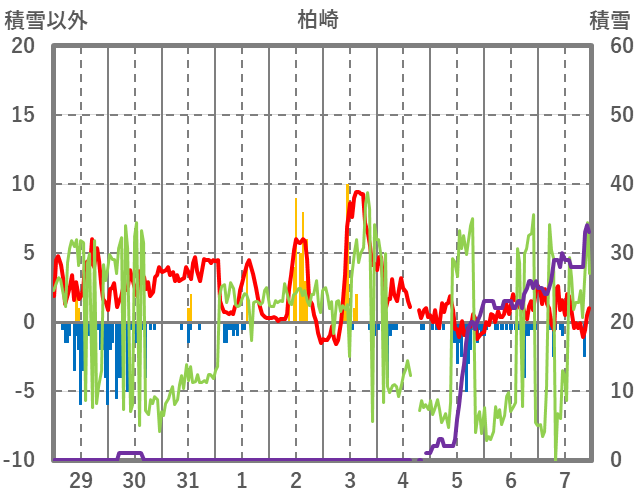 | 日 | 時 | 気温 | 降水 | 風向/風速 | 日照 | 積雪 | 降雪 |