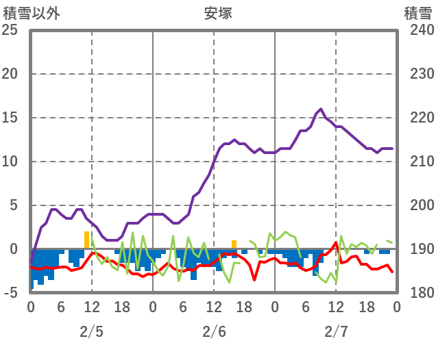 | 日 | 時 | 気温 | 降水 | 風向/風速 | 日照 | 積雪 | 降雪 |
