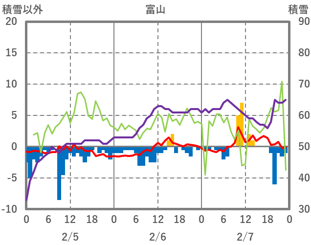 | 日 | 時 | 気温 | 降水 | 風向/風速 | 日照 | 積雪 | 降雪 |