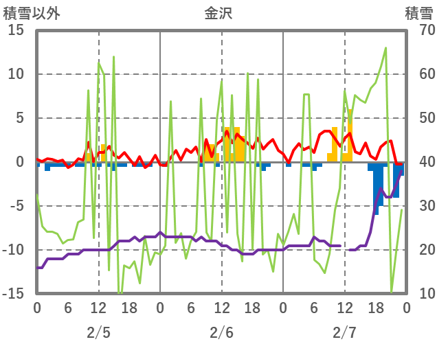 | 日 | 時 | 気温 | 降水 | 風向/風速 | 日照 | 積雪 | 降雪 |