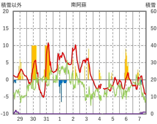 | 日 | 時 | 気温 | 降水 | 風向/風速 | 日照 | 積雪 | 降雪 |