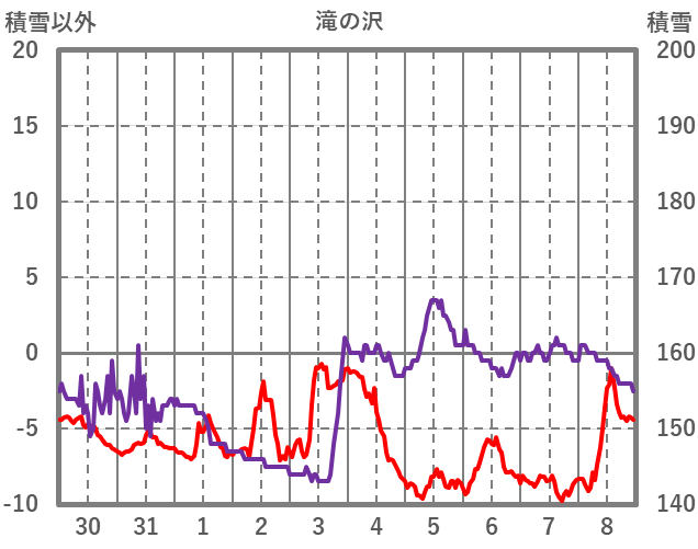 | 日 | 時 | 気温 | 降水 | 風向/風速 | 日照 | 積雪 | 降雪 |