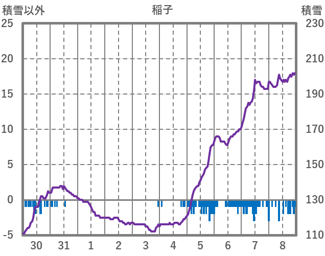 | 日 | 時 | 気温 | 降水 | 風向/風速 | 日照 | 積雪 | 降雪 |