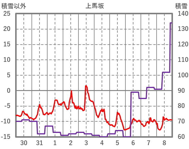 | 日 | 時 | 気温 | 降水 | 風向/風速 | 日照 | 積雪 | 降雪 |