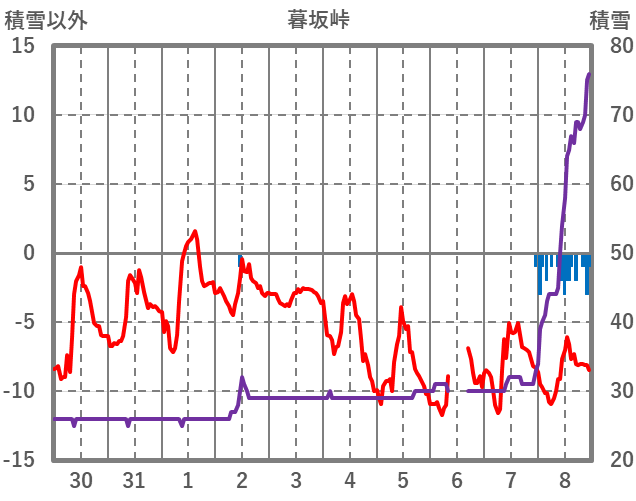 | 日 | 時 | 気温 | 降水 | 風向/風速 | 日照 | 積雪 | 降雪 |