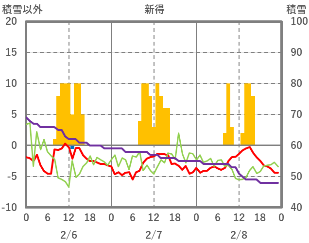 | 日 | 時 | 気温 | 降水 | 風向/風速 | 日照 | 積雪 | 降雪 |