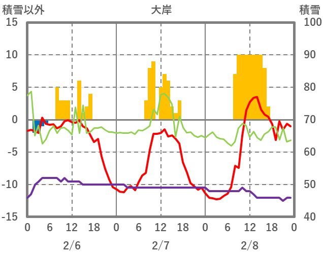 | 日 | 時 | 気温 | 降水 | 風向/風速 | 日照 | 積雪 | 降雪 |