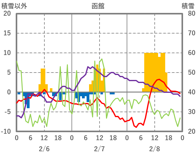 | 日 | 時 | 気温 | 降水 | 風向/風速 | 日照 | 積雪 | 降雪 |